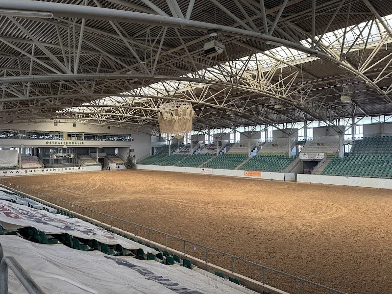 The East Bavarian Equestrian and Tournament Center is more than just a single hall. Gut Matheshof describes the facility with five riding halls, including the East Bavarian Hall, as well as eight riding arenas, an all-weather stadium, oval track, racetrack, and cross-country tracks. In addition, there are 250 hectares of pastureland and countless riding and carriage paths. This range explains why the location is suitable for both classical disciplines and other equestrian sport formats. For search queries like East Bavarian riding center or equestrian center East Bavaria, this scope is crucial because users are not only looking for a hall but a complete training and competition area. ([gut-matheshof.de](https://www.gut-matheshof.de/en/))